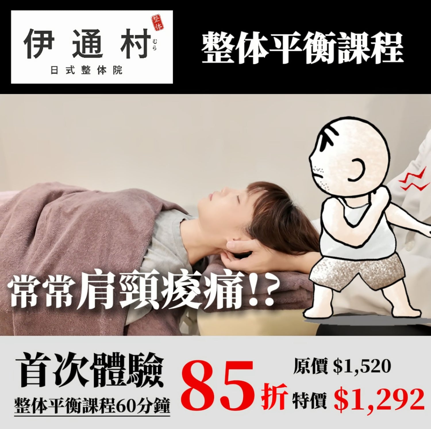 • 60 分鐘整体平衡: 快速校準全身平衡,告別肩頸僵硬、腰痠背痛!
